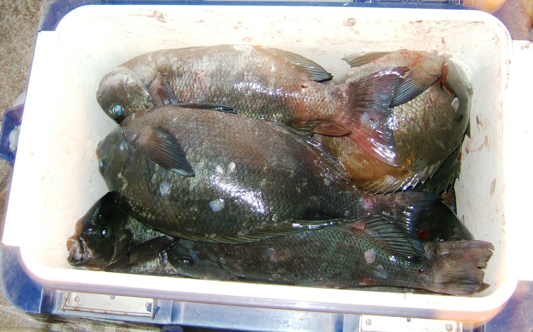 1.4kgのクロ・クロとイサキで三名様クーラー一杯です |
