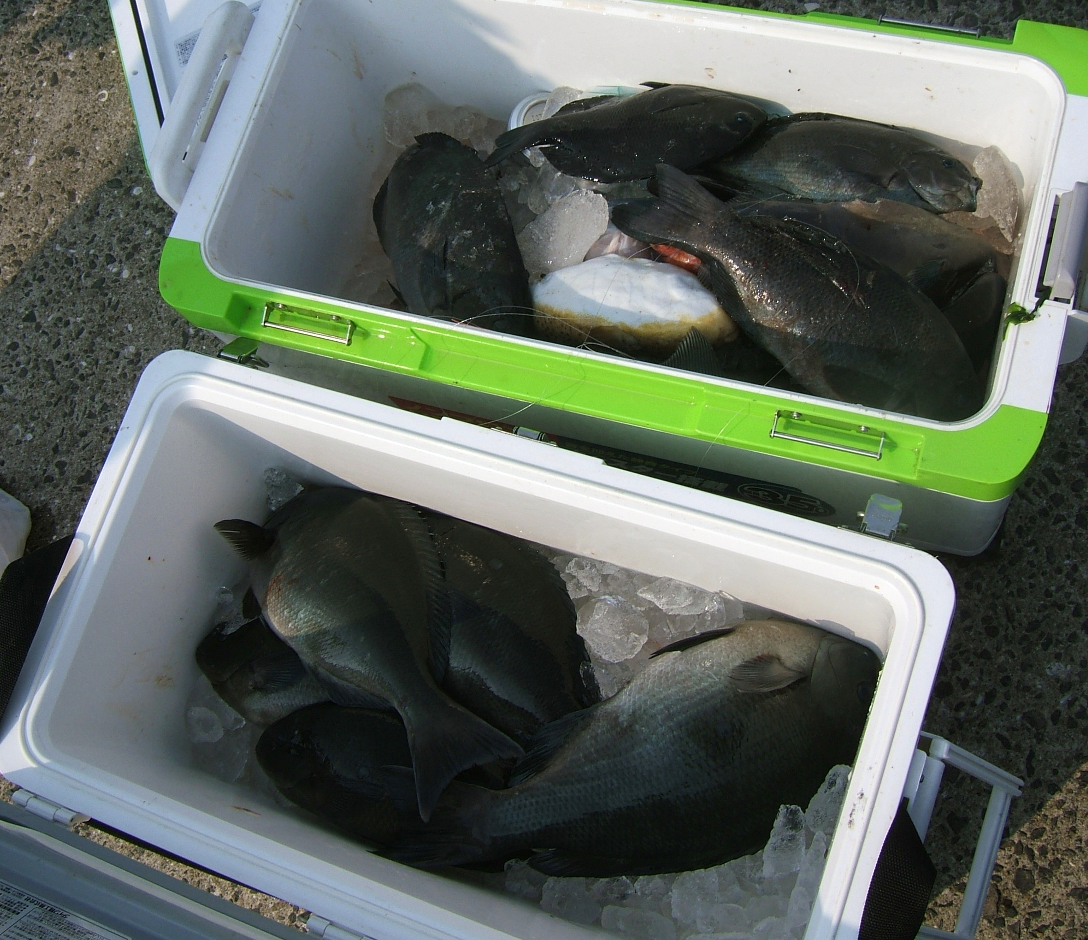 チヌ3,5kg58cm,クロ1,5kg42cm。クーラー満タン |