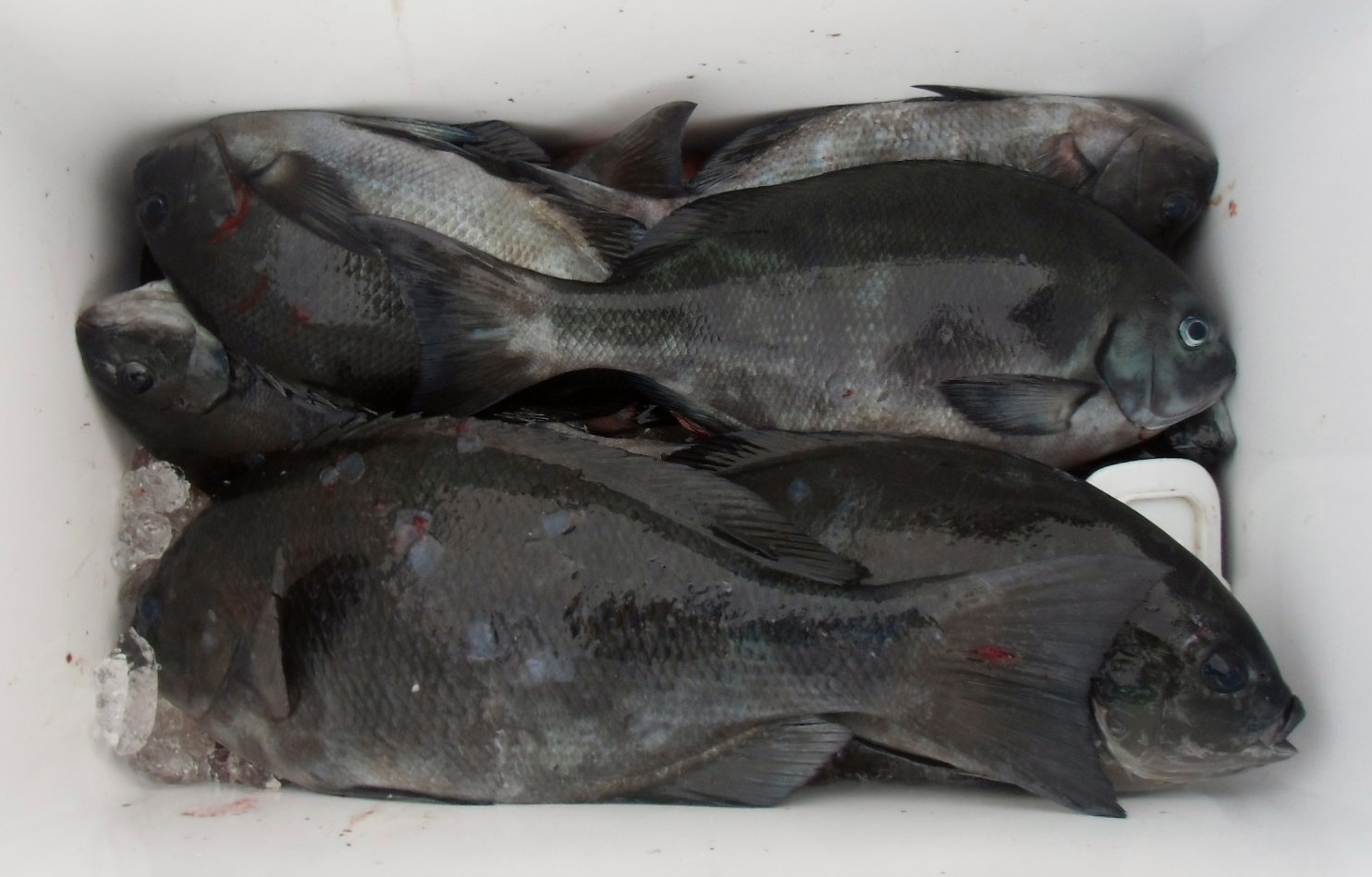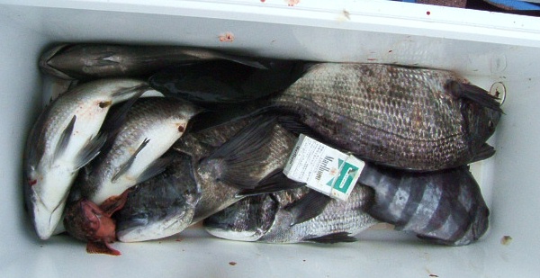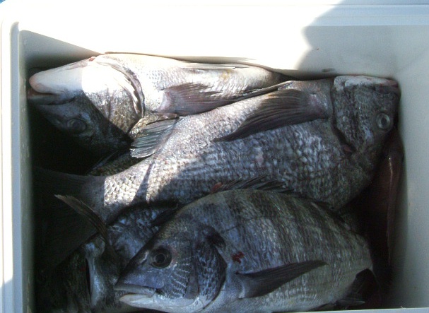 良型のクロ数枚あり。クーラー満杯。クロが釣れ出しました。 |