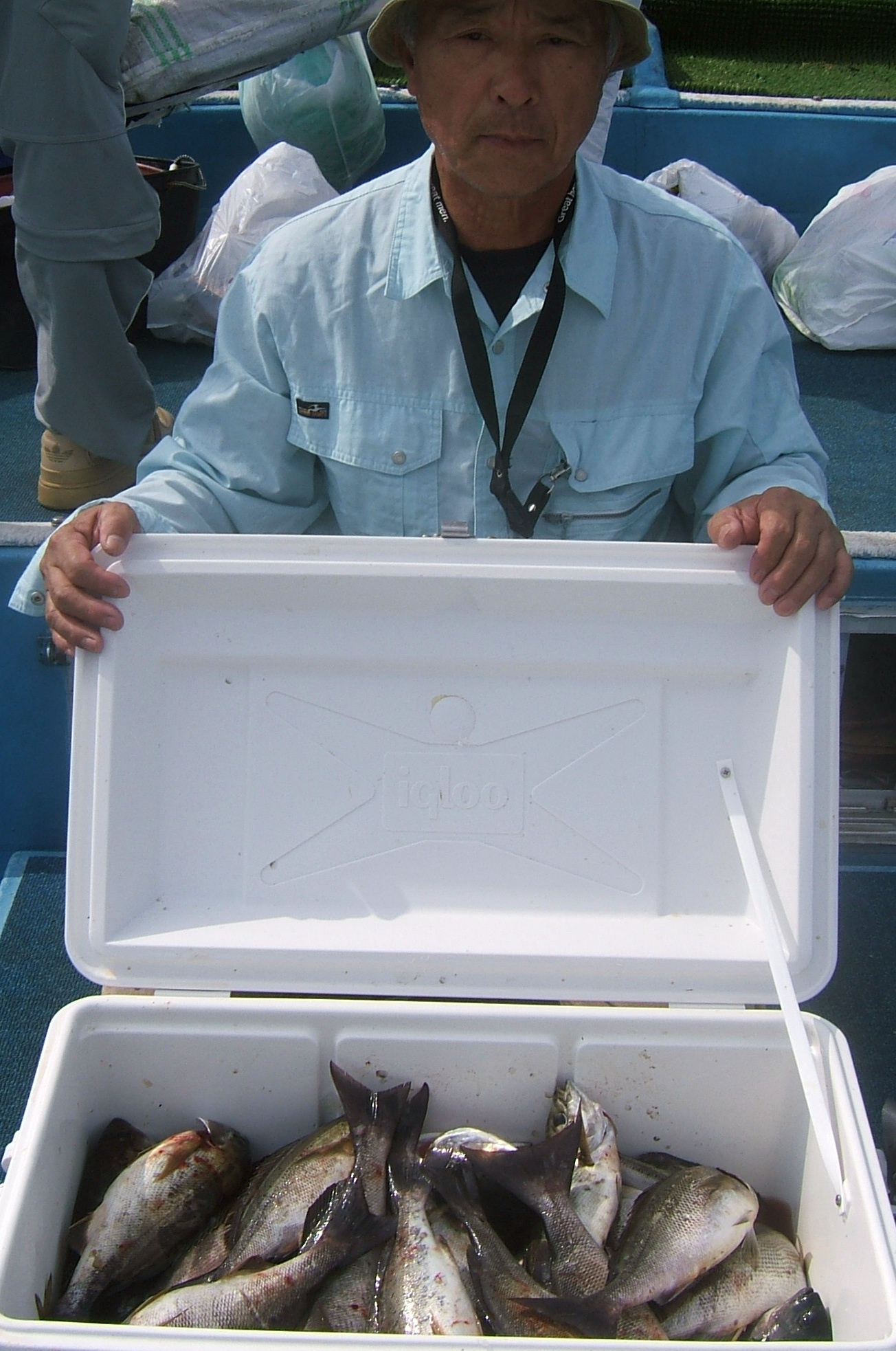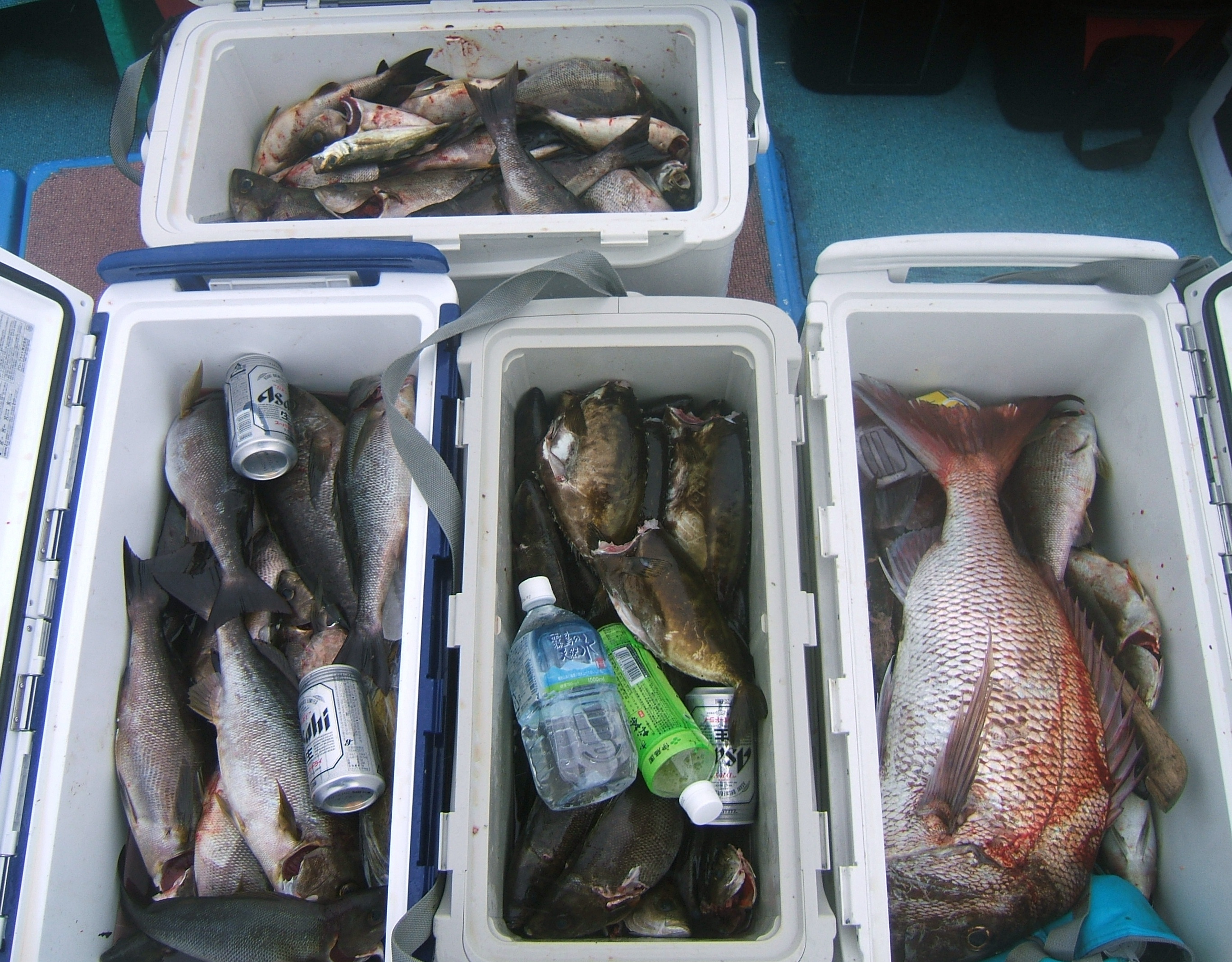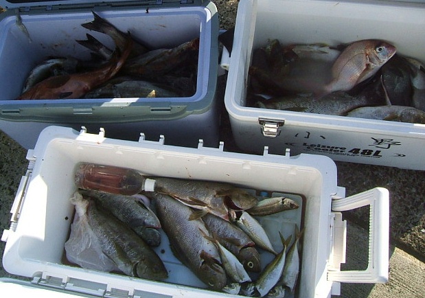 2日目も真鯛数枚ゲット。クーラー2日通して満杯。 |