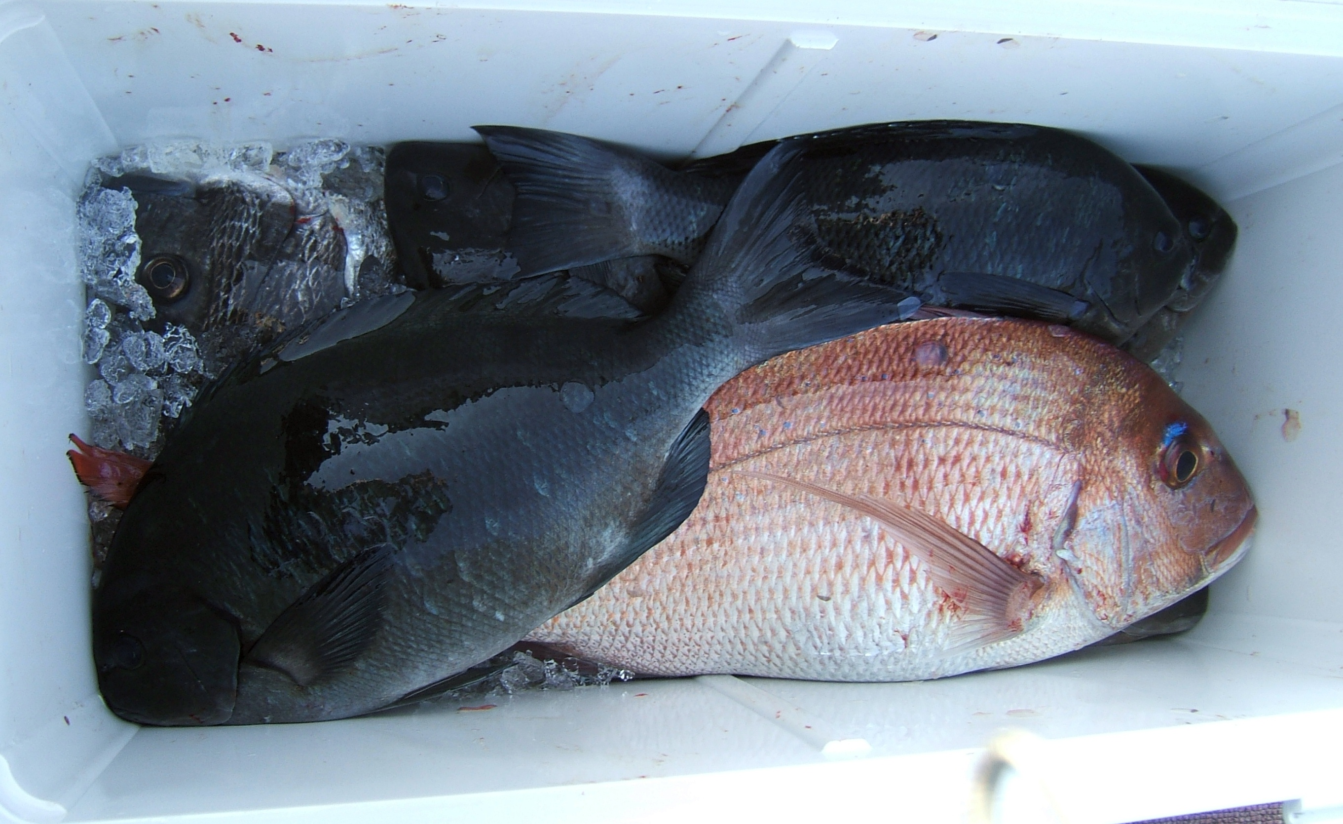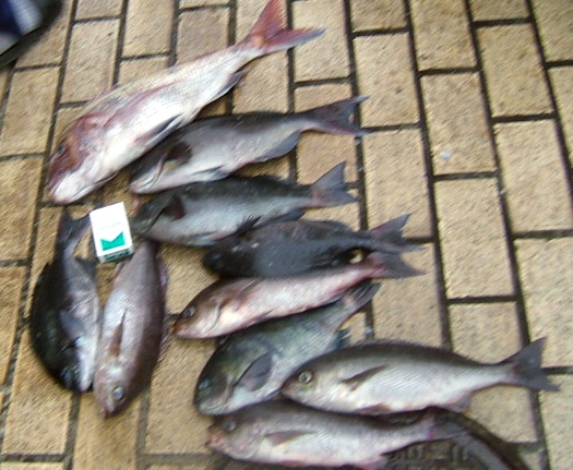 タイ、クロ、スズキ五目釣り。クロもボツボツ連れ出しました。 |